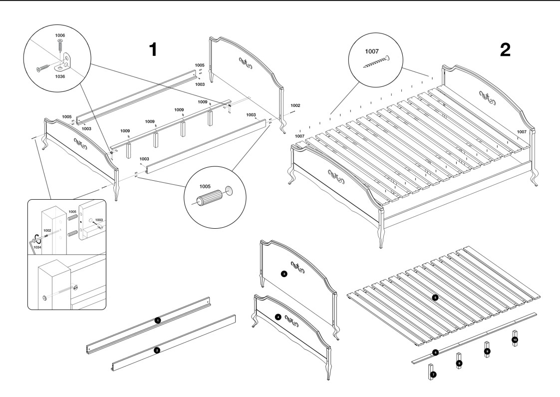 Применяется в кроватях из массива средней и высокой категории.